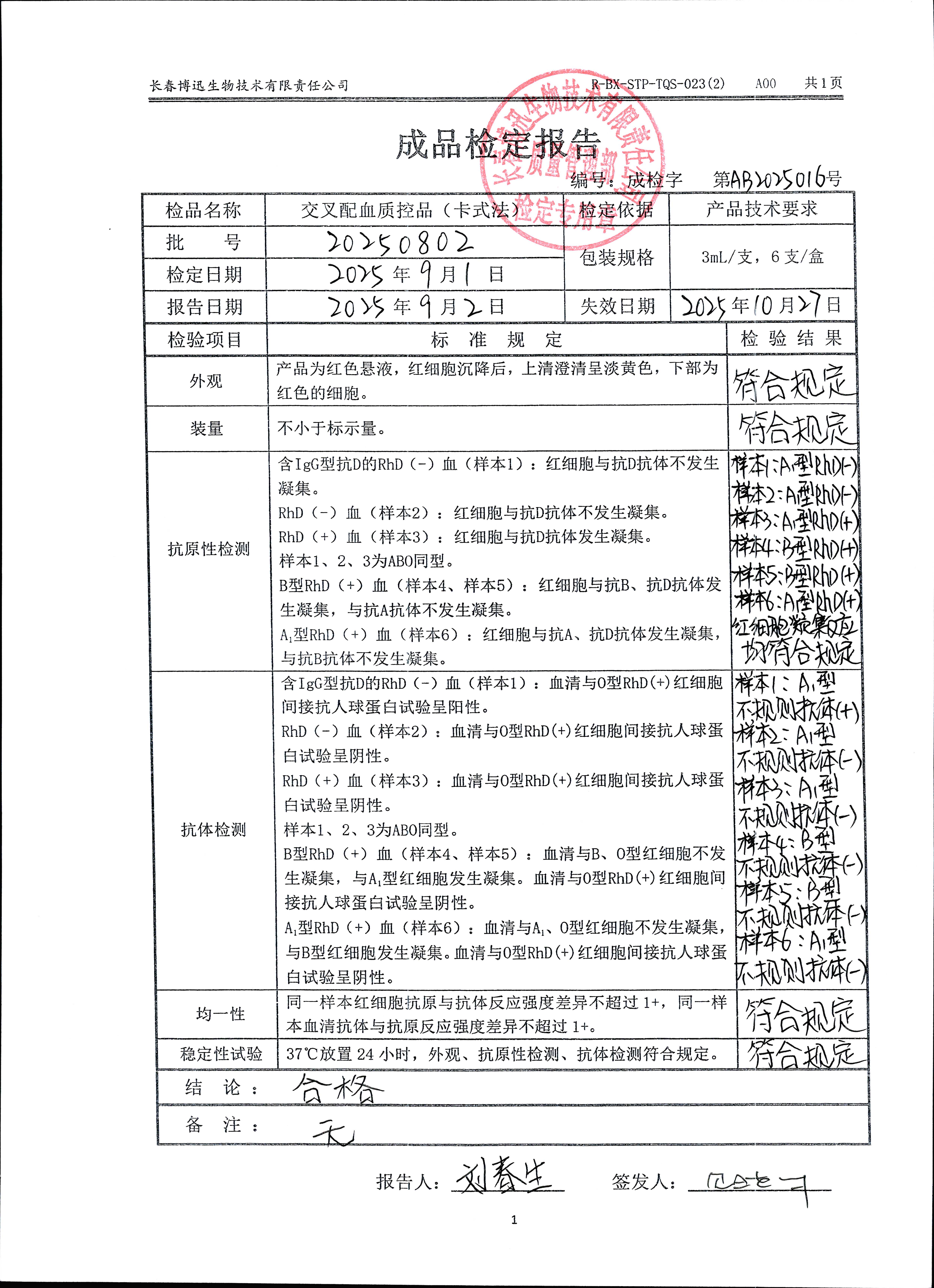 ABO、Rh血型检测质控品(微柱凝胶法)