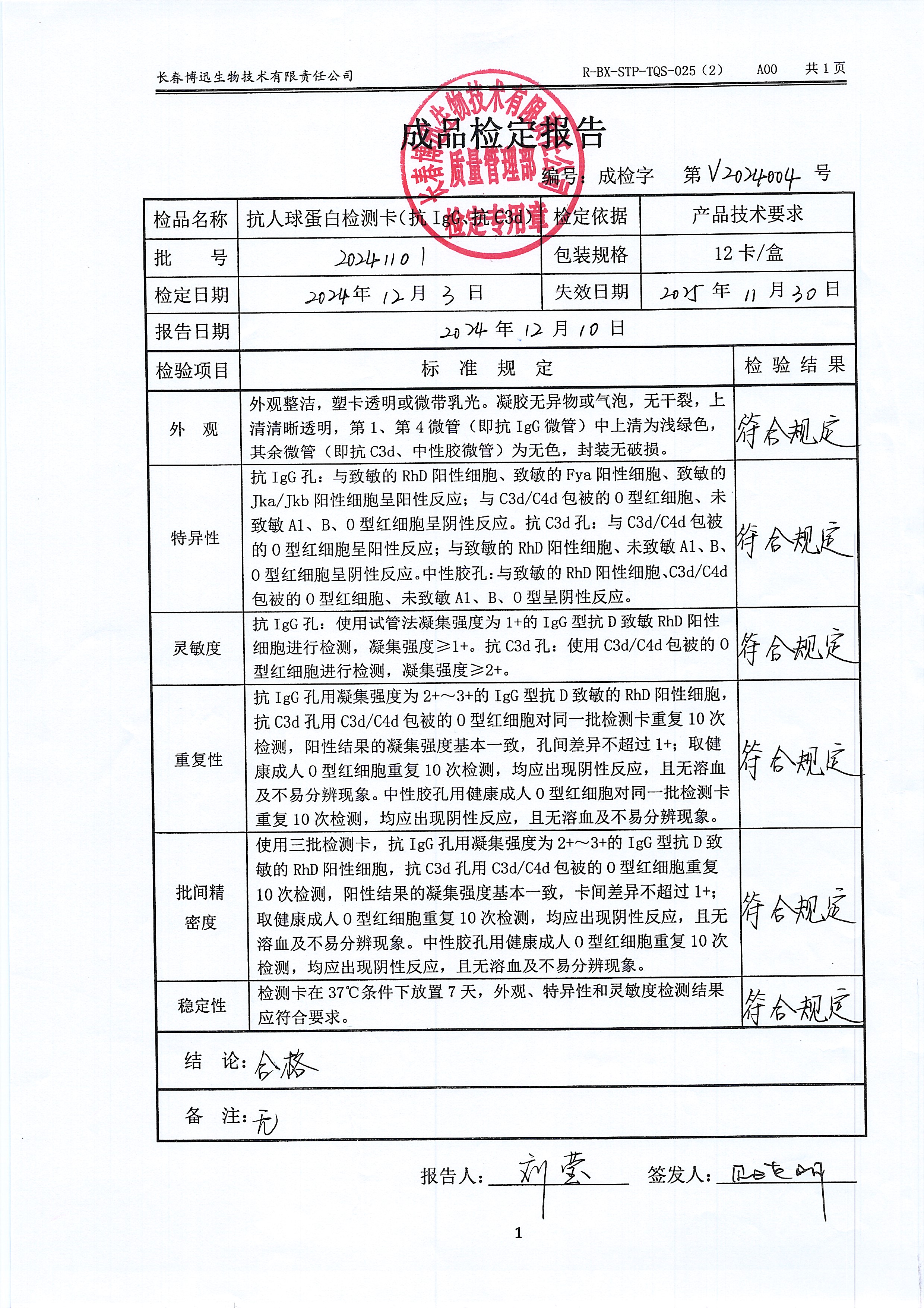 抗人球蛋白检测卡(抗IgG、抗C3d)20241101