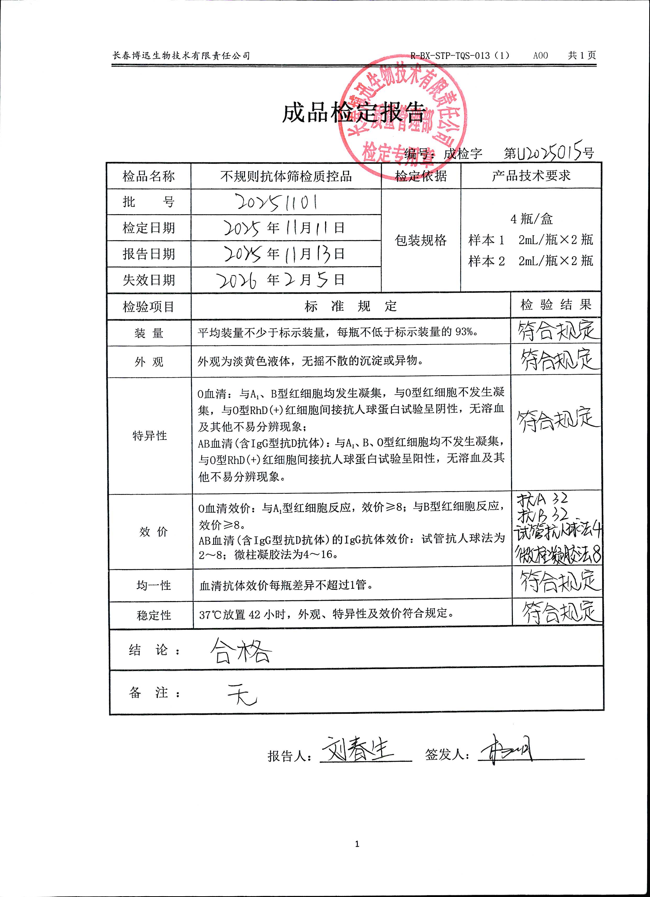 不规则抗体筛检质控品20251101