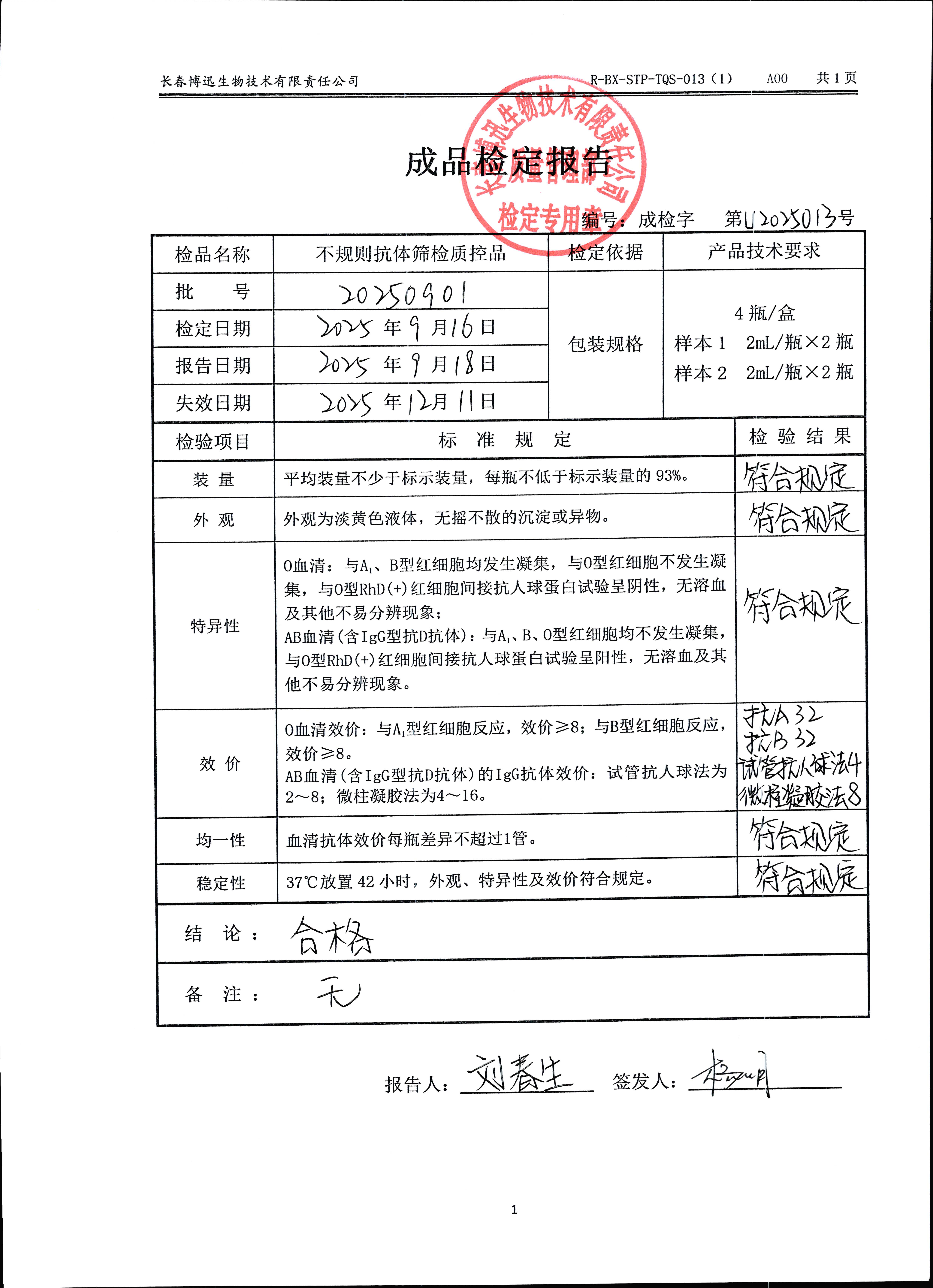 ABO、Rh血型检测质控品(微柱凝胶法)