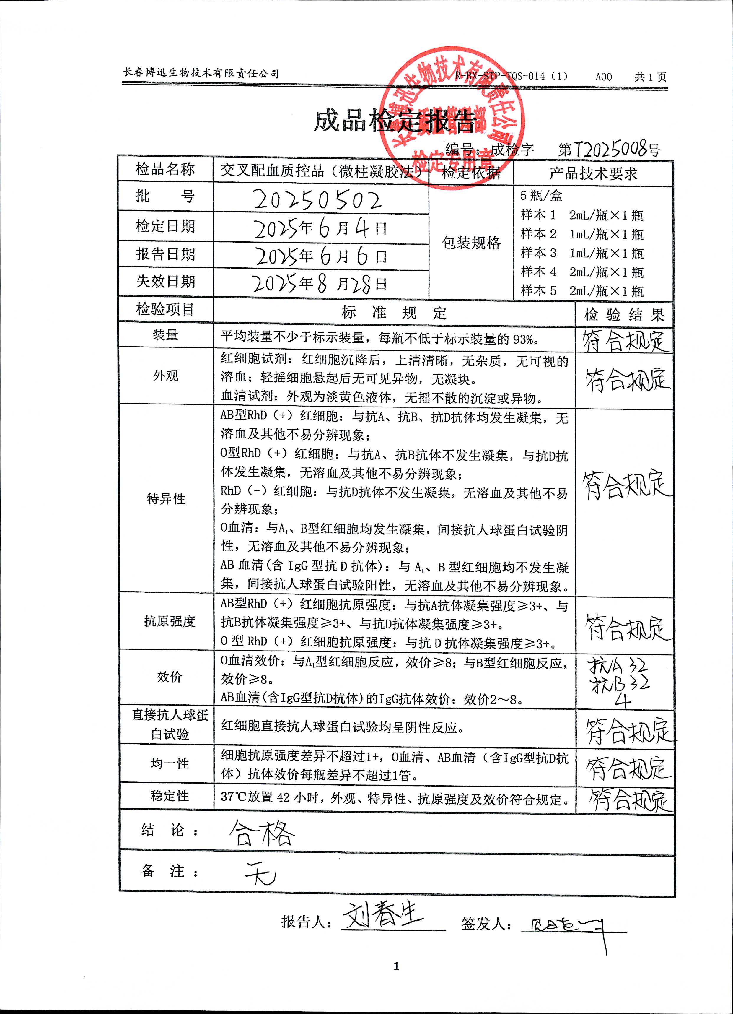 交叉配血质控品(微柱凝胶法)20250502