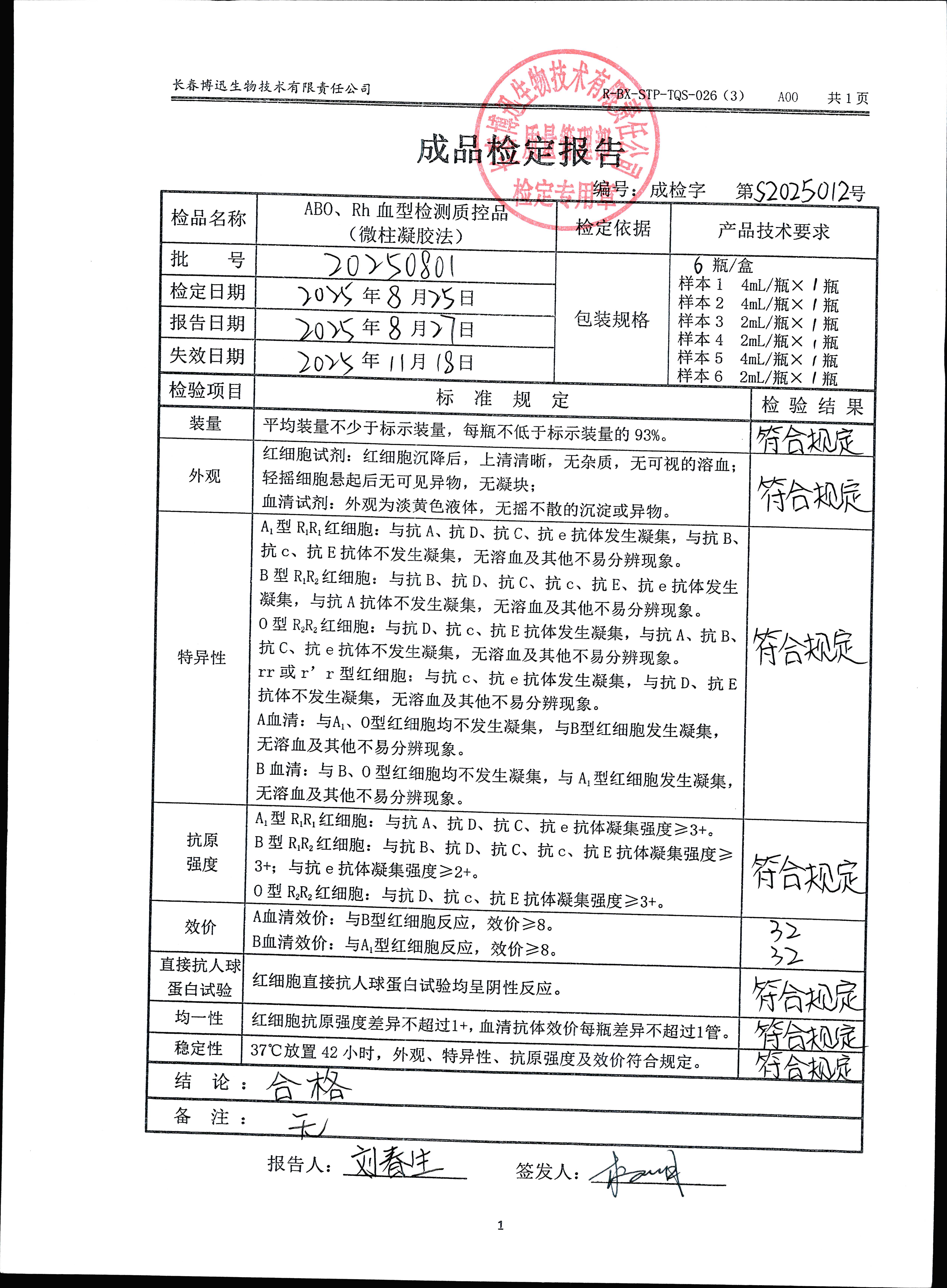 ABO、Rh血型检测质控品(微柱凝胶法)20250801