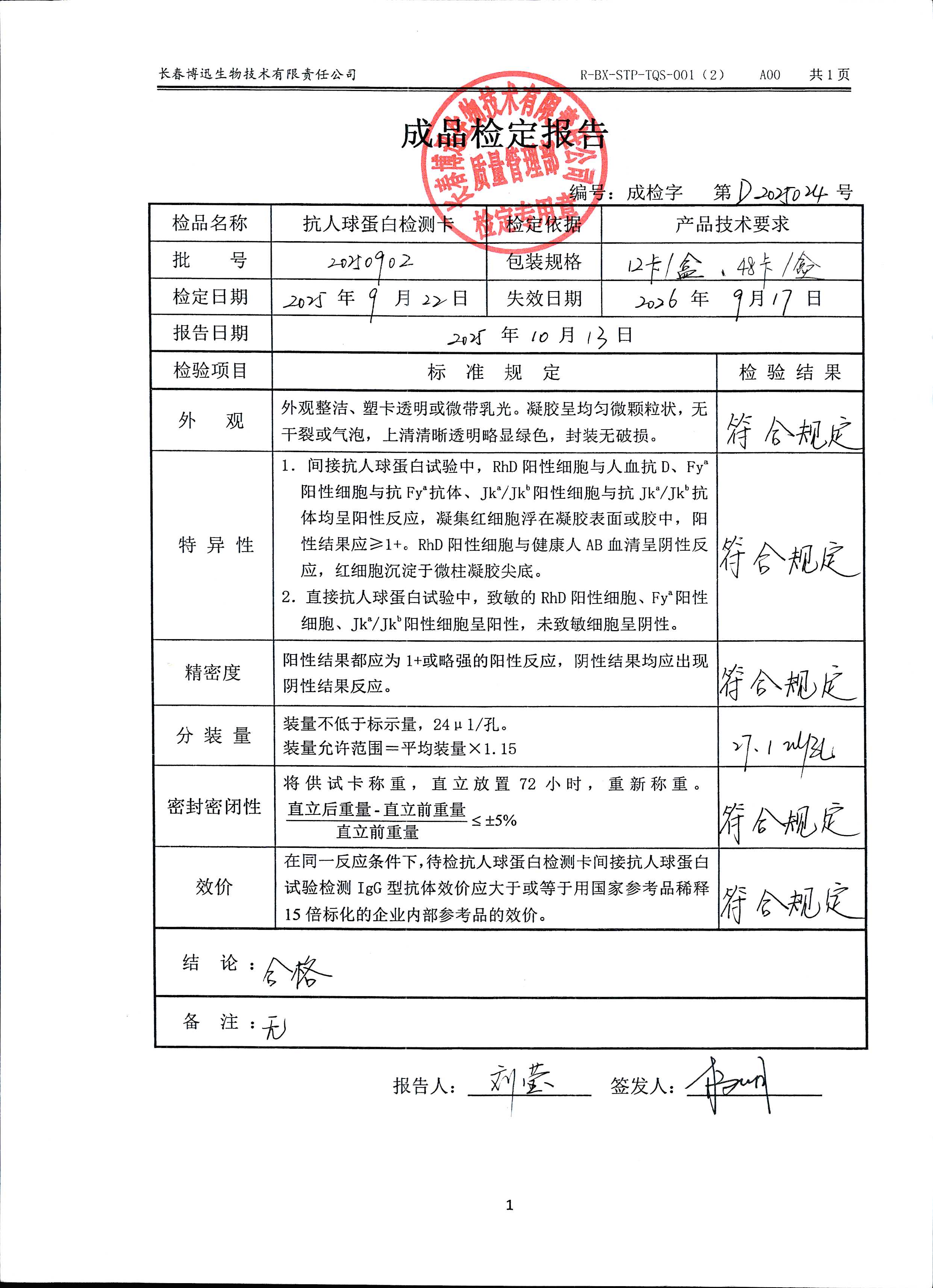 抗人球蛋白检测卡20250902