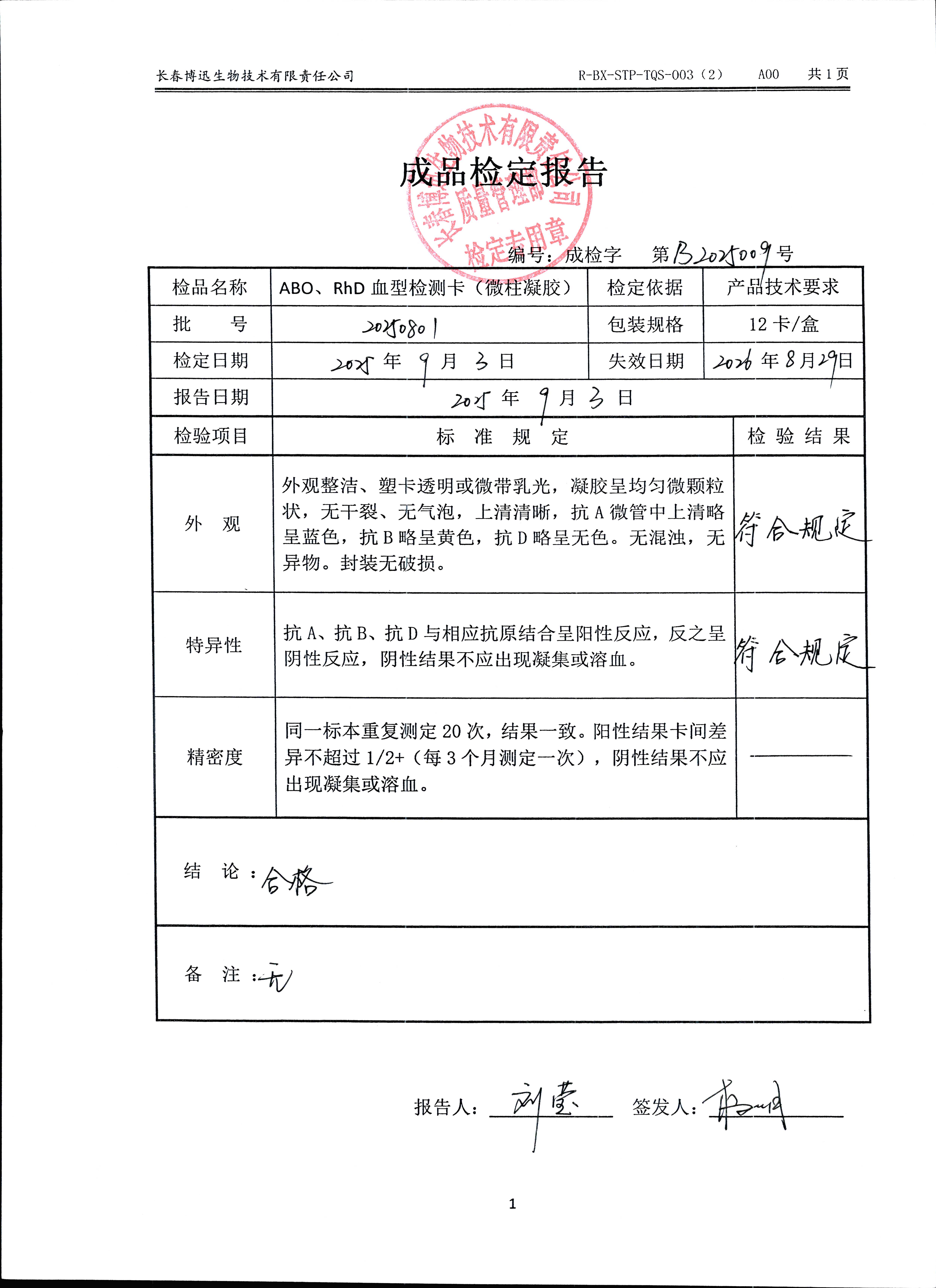 ABO、RhD血型检测卡(微柱凝胶)20250801