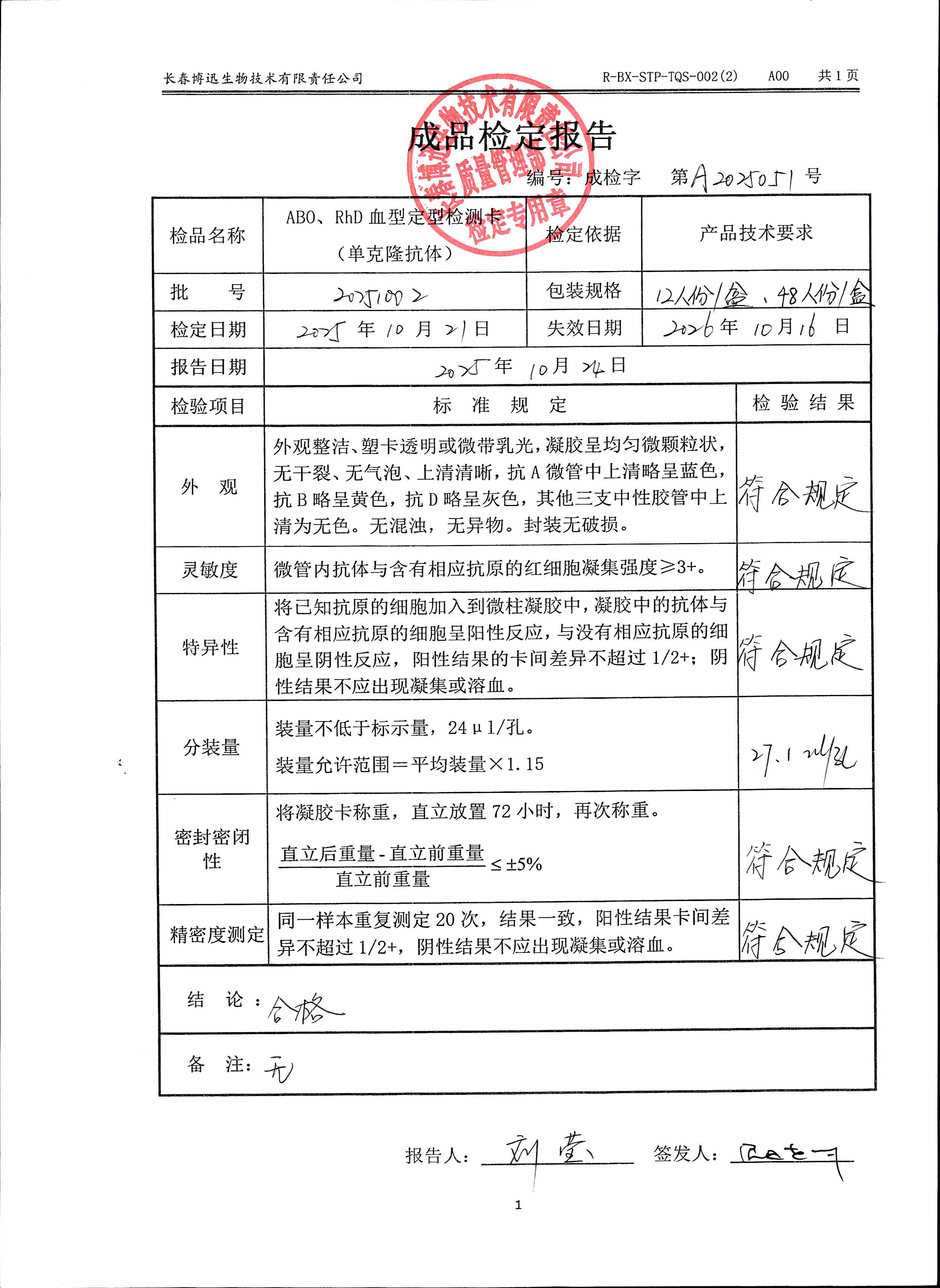 ABO、RhD血型定型检测卡(单克隆抗体)20251002