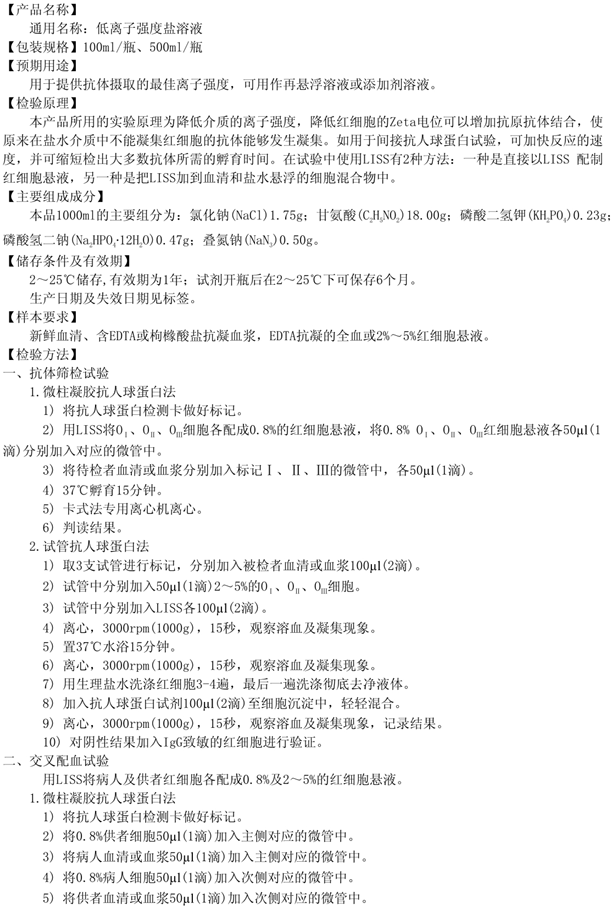 低离子强度盐溶液