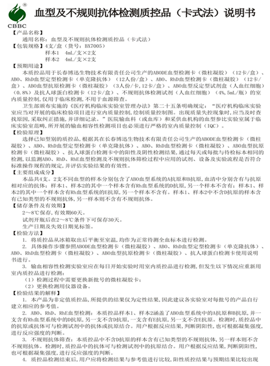 ABO、Rh血型检测质控品(微柱凝胶法)