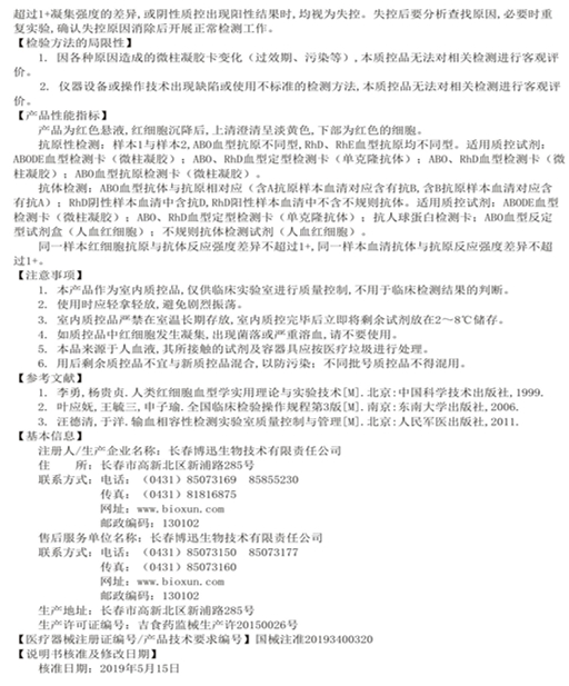 交叉配血质控品(微柱凝胶法)